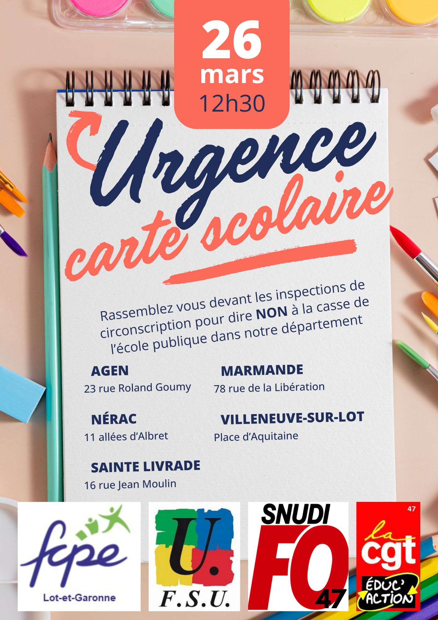 Rassemblement du 30 mars devant la DSDEN à 13h