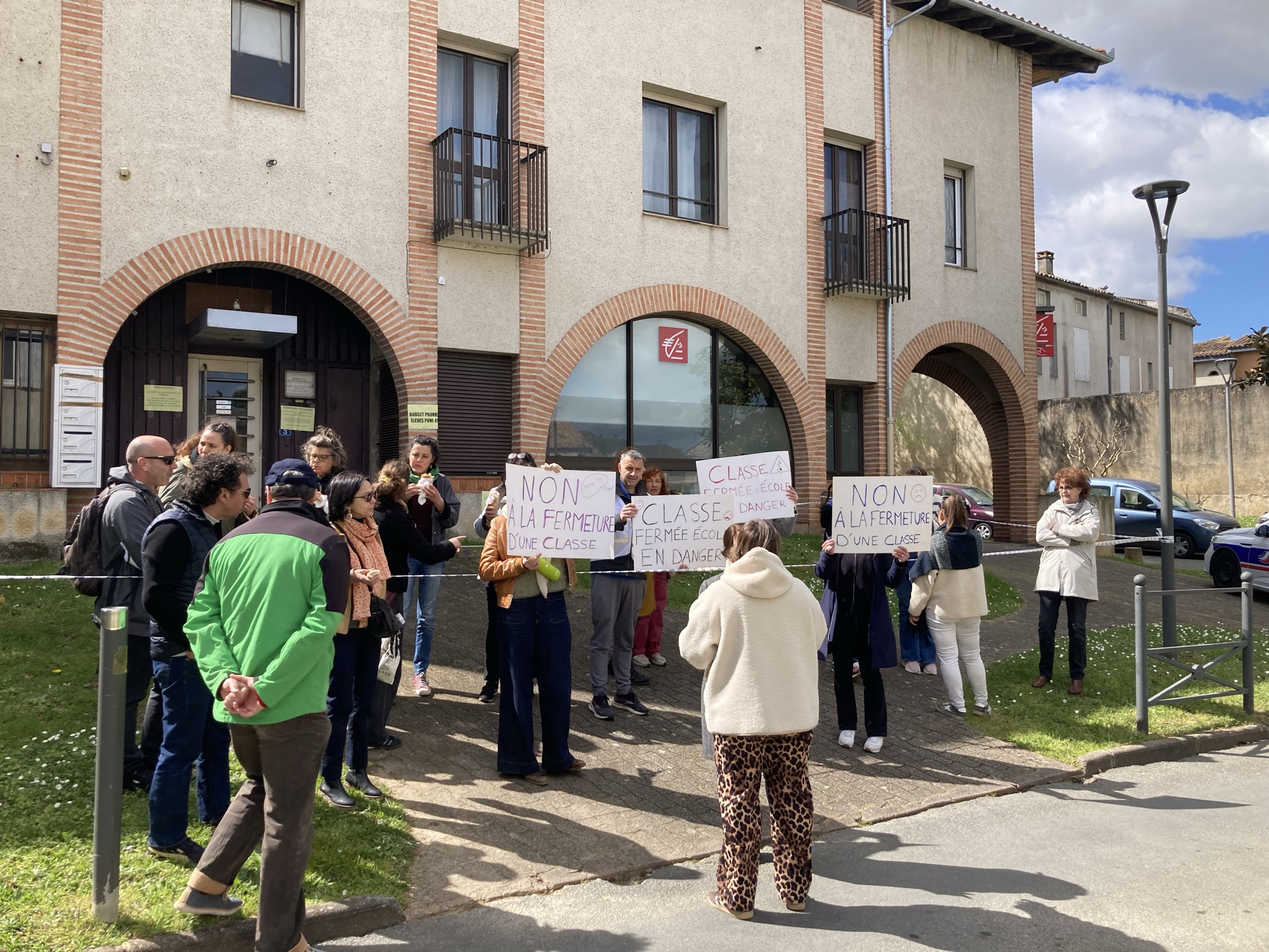 Enseignantes et personnel des écoles du RPI Roumagne Puysserampion Allemans du Dropt en grève