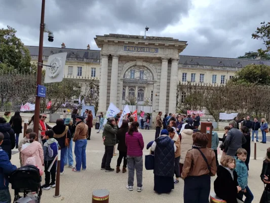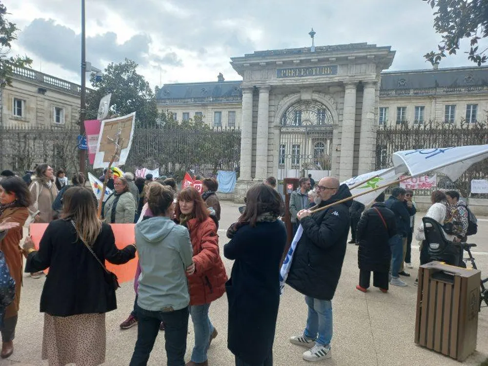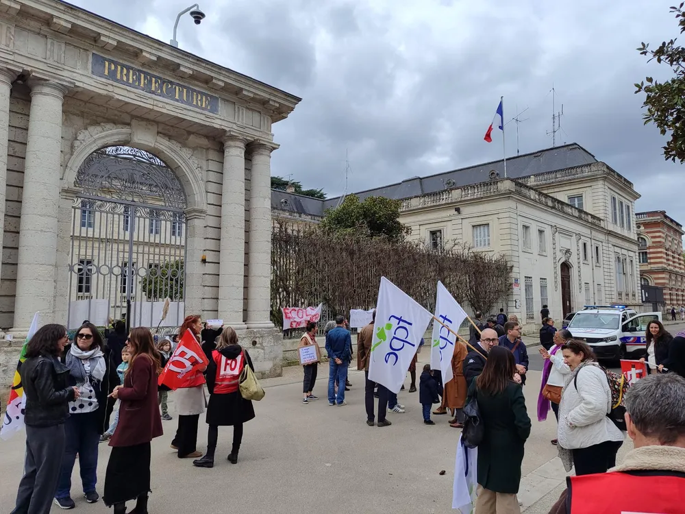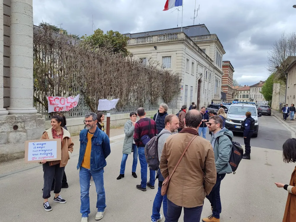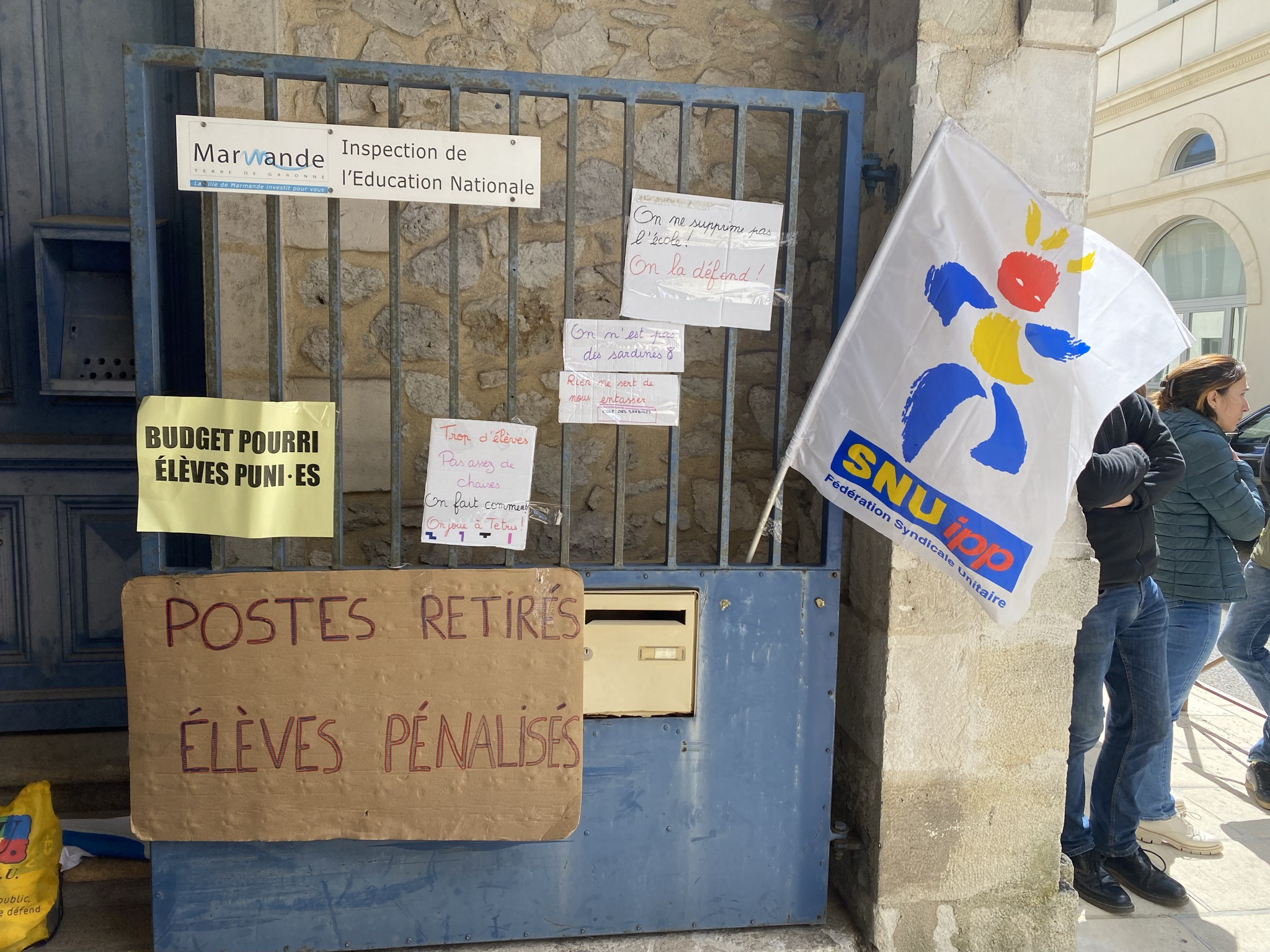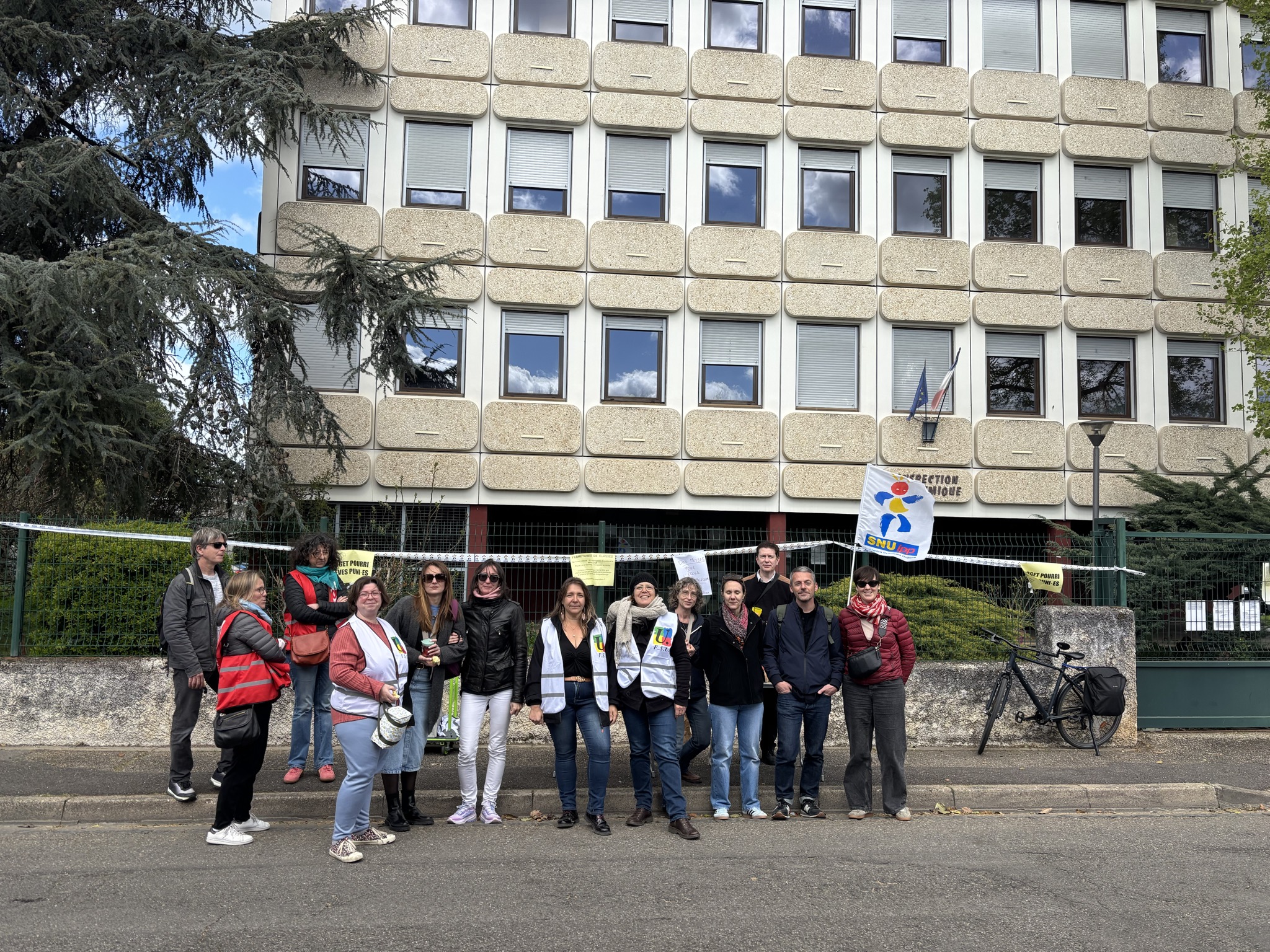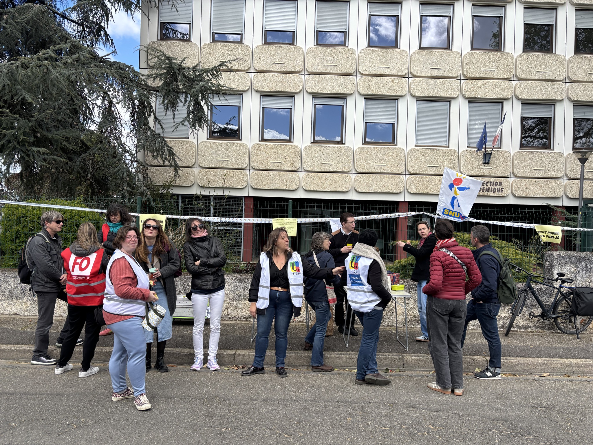 Rassemblement devant la Dsden à l’appel de l’intersyndicale et de la FCPE.