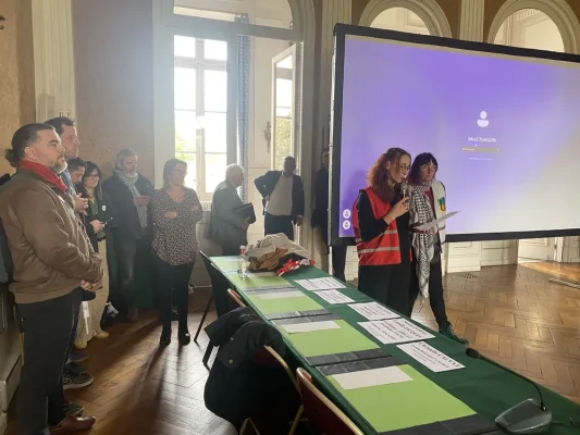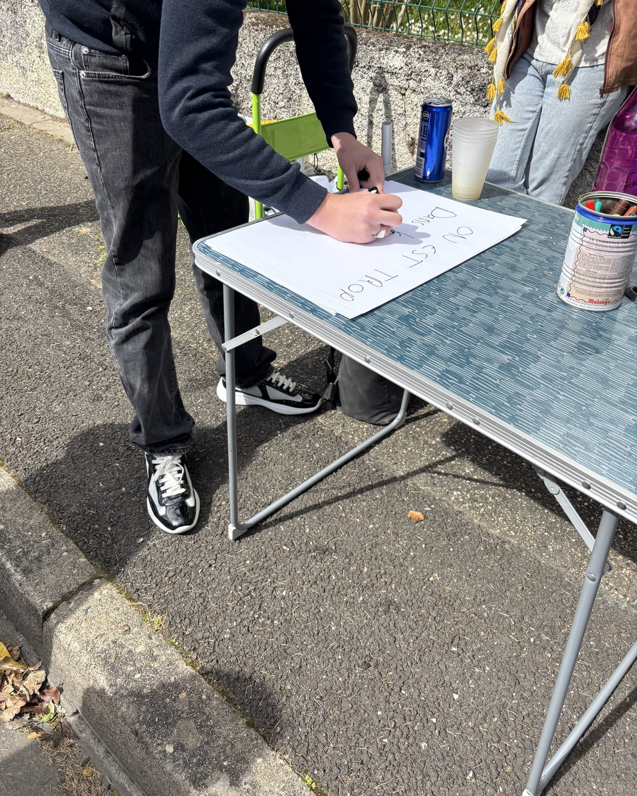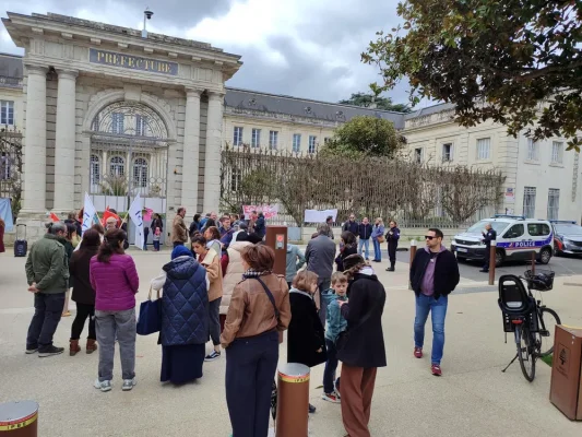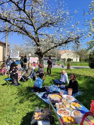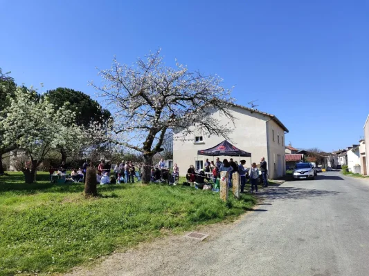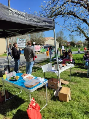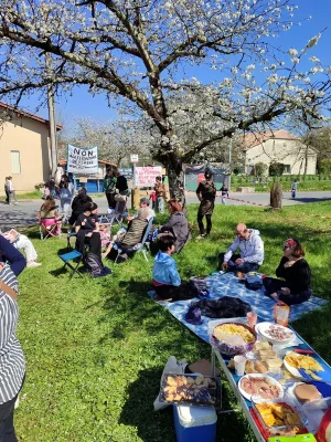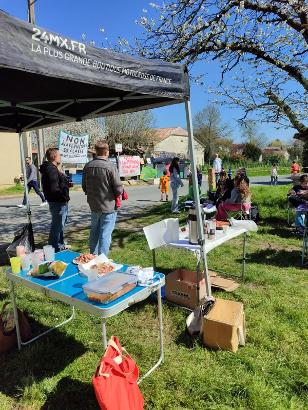 Banderole et rassemblement pour une ouverture à Saint Pardoux Isaac.