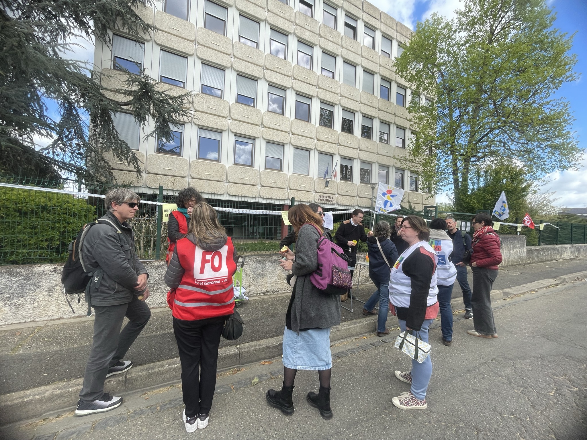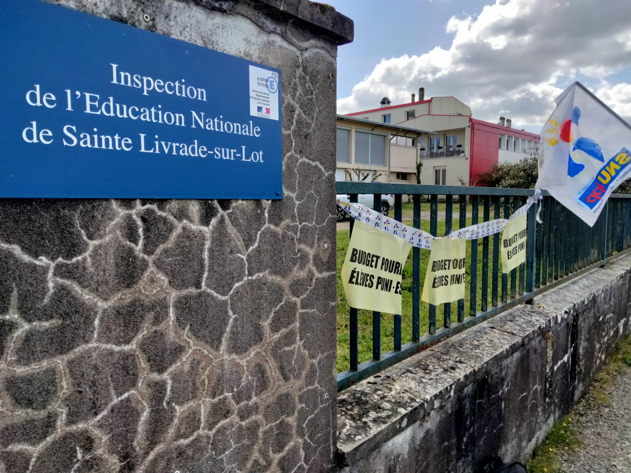 Rassemblements devant les inspections à Agen, Marmande, Nérac, Ste Livrade et Villeneuve-sur-Lot.