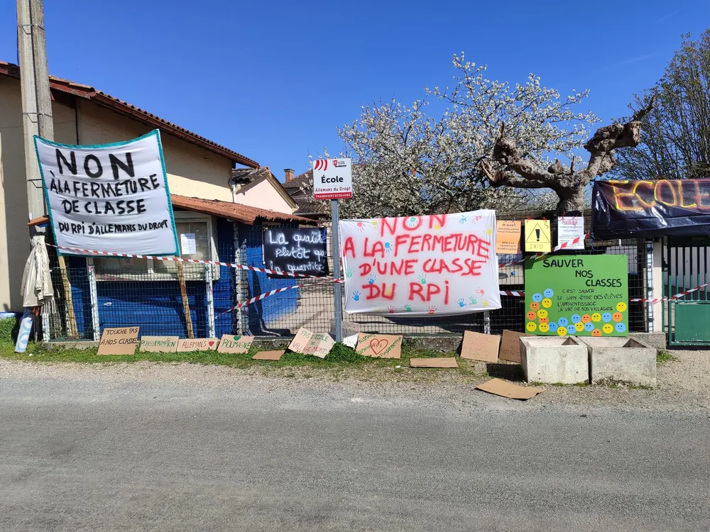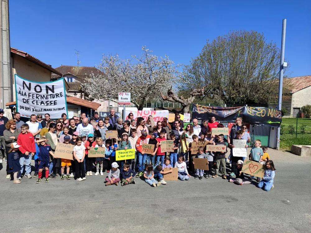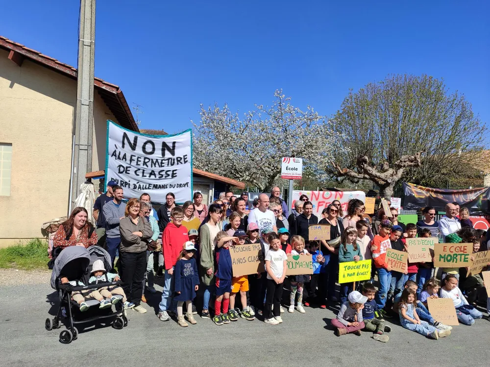 « École morte » pour la défense du RPI Allemans du Dropt-Puysserampion-Roumagne.