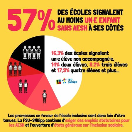 Les promesses en faveur de l’école inclusive sont donc loin d’être tenues. La FSU-SNUipp continue d’exiger le recrutement d’AESH, la création d’emplois statutaires pour les AESH et l’ouverture d’états généraux sur l’inclusion scolaire .
